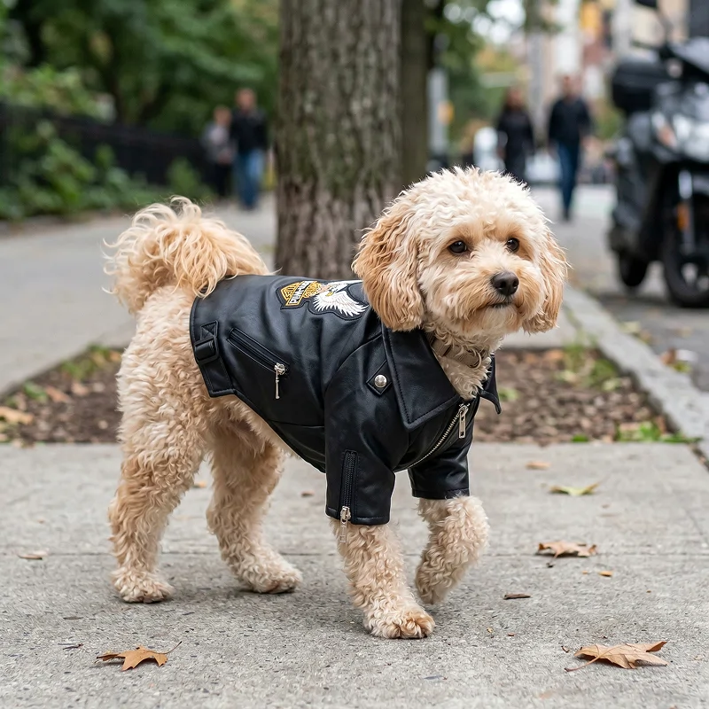 Tyylikäs vedenpitävä nahkatakki koiralle