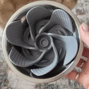 Pieni haittapuoli on, että joskus pienet nappulanpalat lipsahtavat lisäosan alle, jos sitä ei aseteta oikein. Silti se on erittäin tehokas ja hidastaa koirani vauhtia.