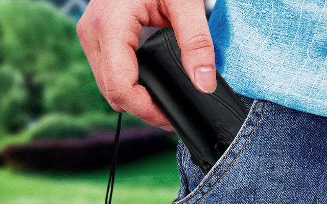 Tämä laite mahtuu taskuusi, joten se on kätevä ulkokäyttöön.